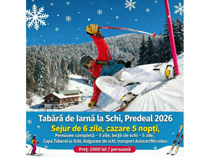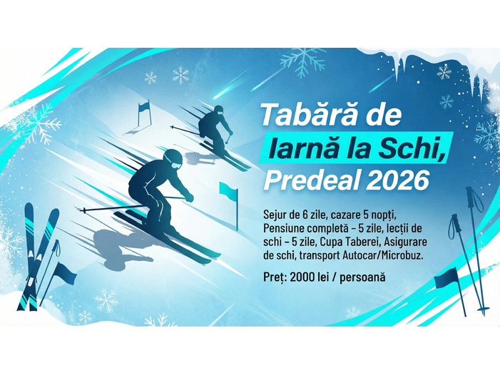 – Se asigură monitori de schi/zilnic (Pregătire teoretică și practică 09:30-11:30, 16:00-18:00);