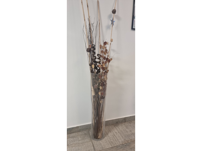Ideală pentru living, birou, hol sau cadou, această piesă decorativă este înaltă de aproximativ 150 cm iar vaza 70 cm și oferă un farmec aparte spațiului tău.