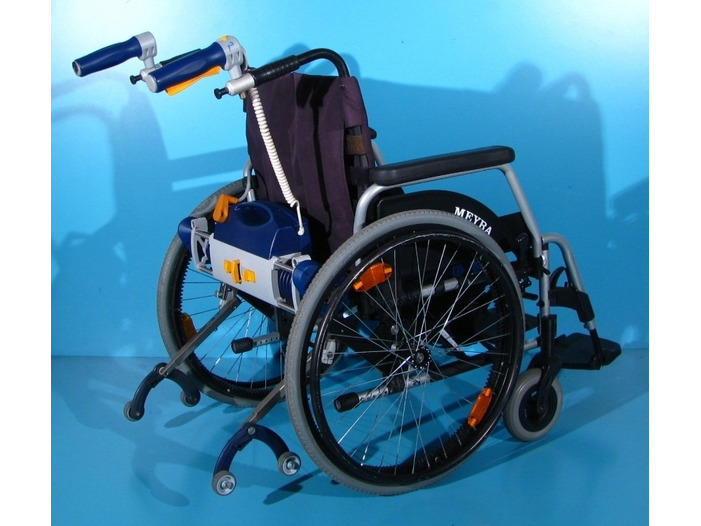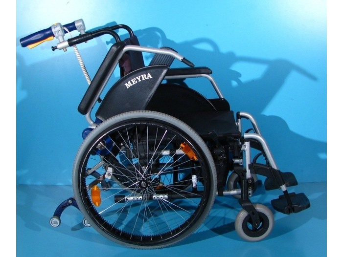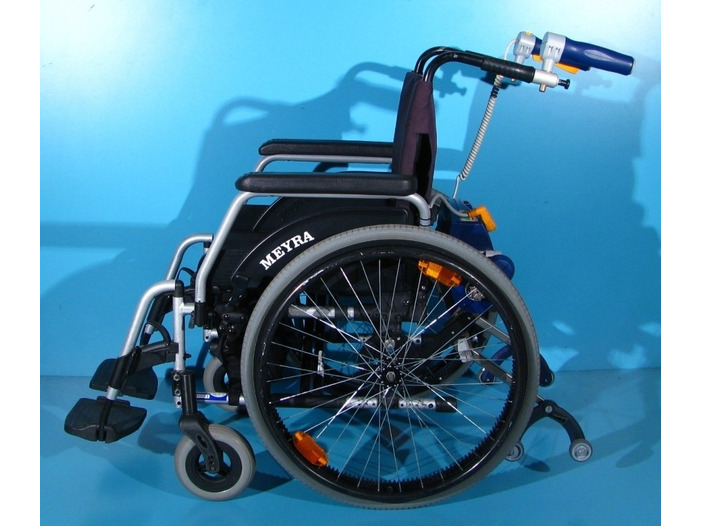 Meyra este denumirea scaunului cu rotile pe care este instalat acest dispozitiv.