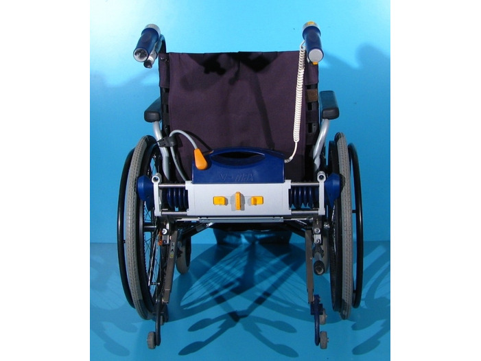 Dispozitivul V-max AAT si bateria acestuia se detaseaza foarte usor de scaunul cu rotile facandu-l pliabil, usor de manevrat, transportat si depozitat.