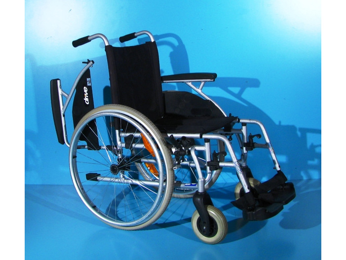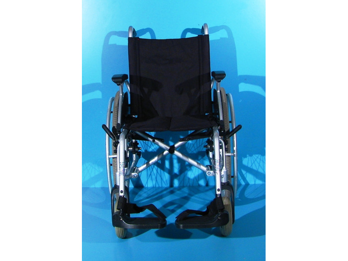 Scaunul rulant are schelet metalic si parti din aluminiu, vopsit epoxy.
