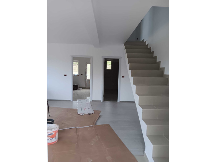 -Constructia case este una solida, din caramida cu structura de rezistenta din beton armat, turnat la pompa, placa turnata intre etaje, scara interioara este din beton si placata cu gresie, tamplaria exterioara este din PVC cu geam termopan. usi interioare MDF, in bai si bucatarie avem gresie si faianta, acoperisul este din tabla de tip Lindab.